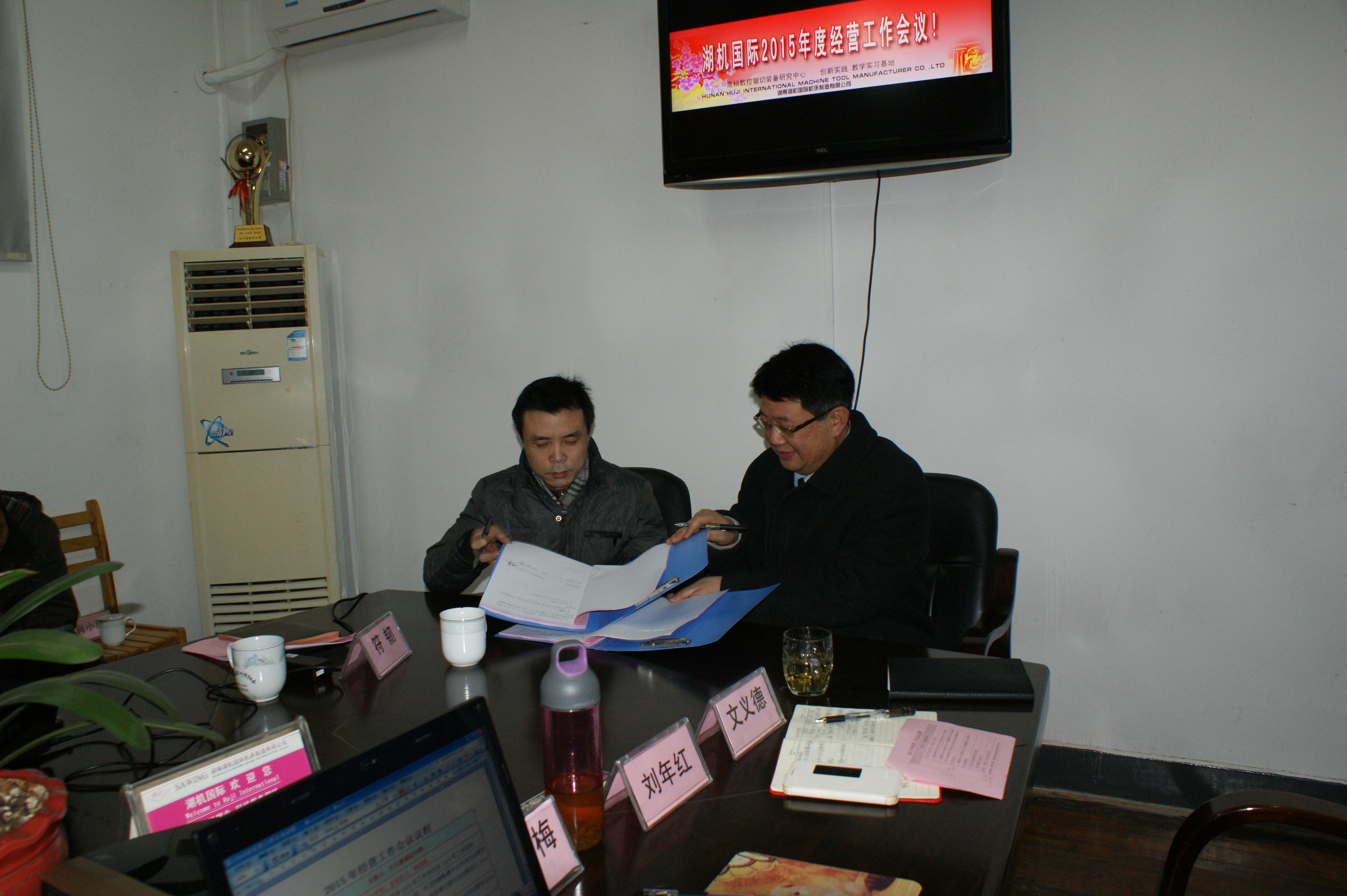 會上,會議首先聽取了符韌總經(jīng)理題為《堅定信心,破冰前行》的2015年工作總結(jié)及2016年工作思路報告。符總指出,2015年在國家宏觀經(jīng)濟增速持續(xù)下行的大環(huán)境下,公司的經(jīng)營業(yè)績受到了創(chuàng)業(yè)6年來市場最強烈的沖擊。2016年公司各項工作應(yīng)以董事會提出的2016年工作思路為行動綱領(lǐng),全面貫徹落實董事會新時期提出的兩大調(diào)整和打好三大攻堅戰(zhàn)的工作要求。馬斌總助、柳勇總助、羅潤湘副經(jīng)理、肖雪梅總助、胡偉部長分別代表工程配套分公司、環(huán)衛(wèi)機械配套分公司、鋸床分公司、管理辦公室、財務(wù)審計部與公司總經(jīng)理簽訂了2016年目標(biāo)責(zé)任書和工作任務(wù)書。公司總工程師葉鈞針對2015年鋸床改進提升和2016年公司科技工作作了主題發(fā)言。