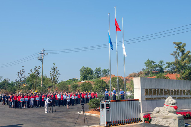 2019年7月29日,仲夏時節(jié),驕陽似火,公司在寧鄉(xiāng)經(jīng)開區(qū)永佳路新址隆重召開湖機國際產(chǎn)業(yè)園開園升旗儀式。